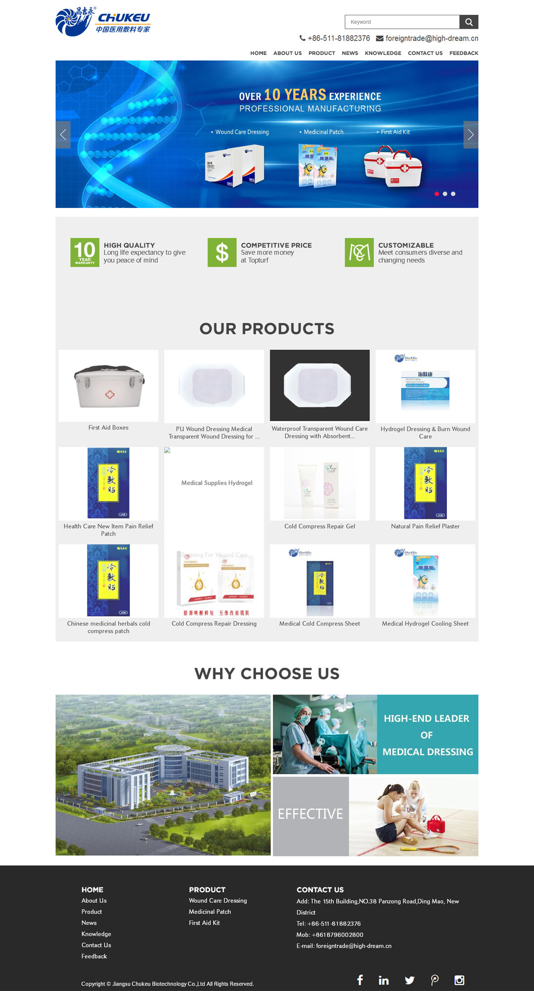 江苏昌吉永生物科技股份有限公司致力于生物医用新材料及相关应用产品的研发、生产和销售。公司主要产品有水凝胶、水胶体、藻酸盐、壳聚糖、泡沫等功能性伤口敷料、透明质酸钠植入系列及骨修复材料等生物技术医疗器械产品。客户网站为:www.chukeu.com,欢迎访问。